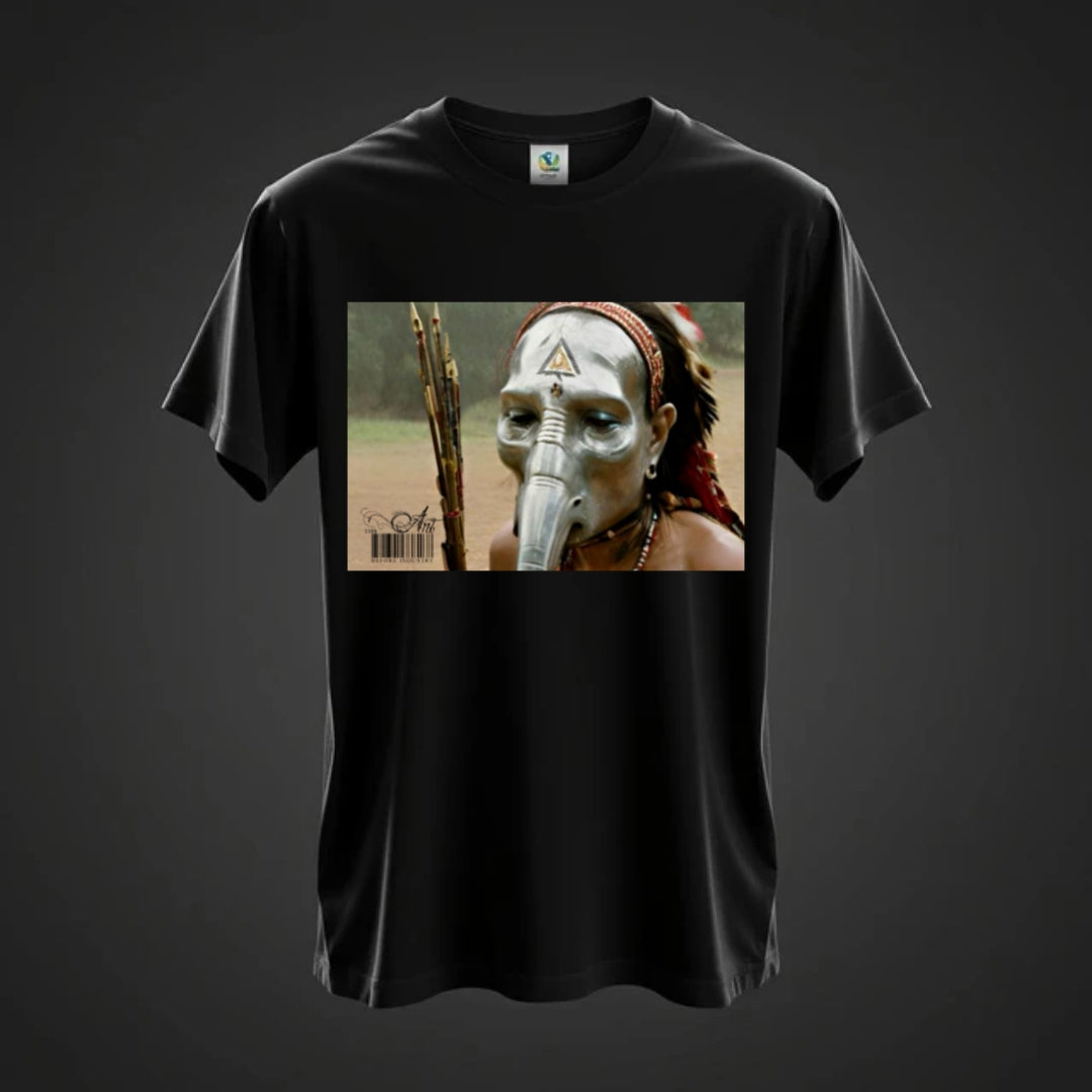 A time-traveling protector of the Black Hills, Akicita BoneNecklace wears an obsidian elephant mask etched with constellations. Kevlar and beaded leather regalia conceal sage and calendula in digital pouches, while a soft tech glow crowns the healer-warrior whose footsteps echo like memory over hollow ground.