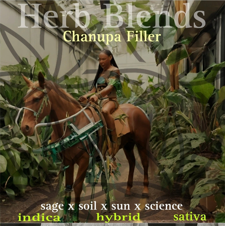 "Chanupa" means pipe — a sacred symbol in Dakota tradition. This ‘Chanupa Filler’ T-shirt features a powerful image of an Herb Chemist surrounded by nature, blending Sativa, Hybrid, and Indicawith sage, soil, sun, and science. A bold tribute to ancestral knowledge and herbal mastery.